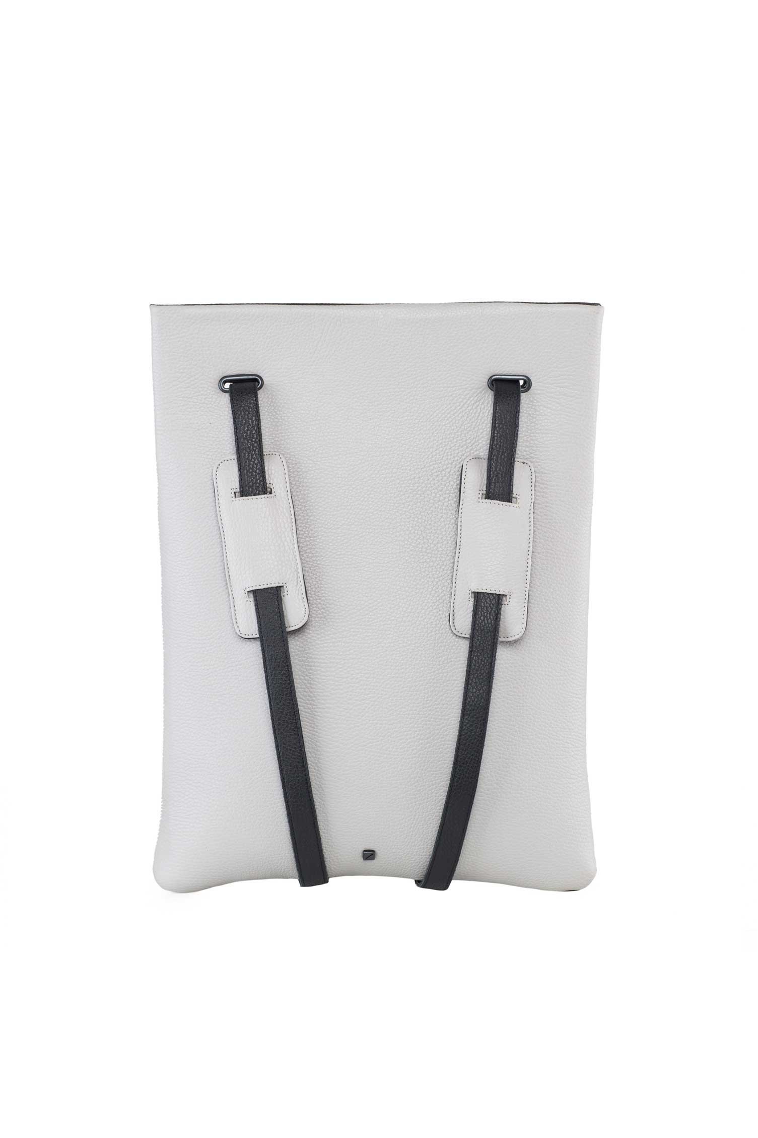 Black leather in one side. Back in light grey leather. Adjustable straps 70cm to 90cm. One bigger inner pocket to your laptop with a velcro closer. Dimensions: 46 x 35 cm. This backpack fits up to 15 laptop. Made in Portugal REF. MMLPBG